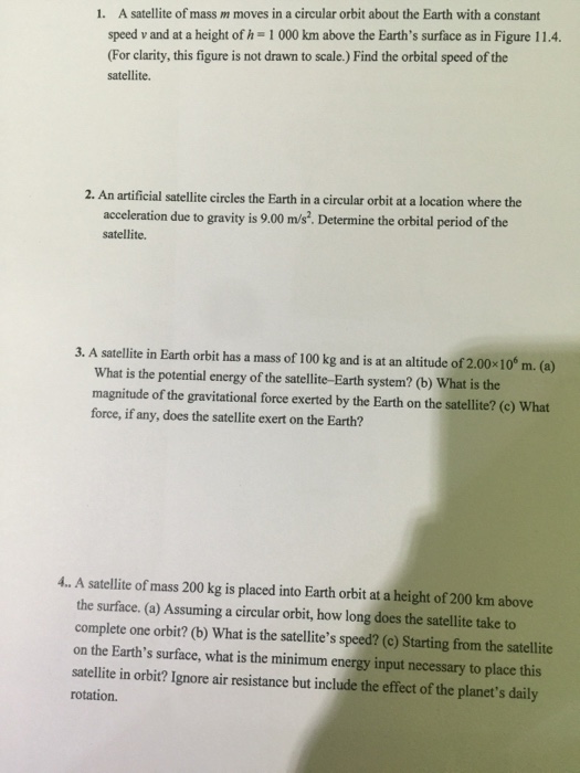 A weather satellite circles 0 4 unit above earth with the center of its circular orbit at the center of. Formula to calculate the height from the surface of the earth is g g r r h 2. Determine the orbital period of the satellite. An artificial satellite circles the earth in a circular orbit at a location where the acceleration due to gravity is 8 26 m s2.