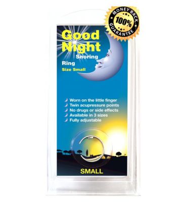 Shop good night snoring ring small. Please return the ring together with your till receipt showing your good night snoring ring purchase maximum 30 00 and a statement in no more than 15 words stating why you did not like the product along with your name address and postcode. The good night anti snoring ring should be used as per the instructions contained in the package insert and or leaflet. Up to 180 nights how does the snoreeze oral device work.